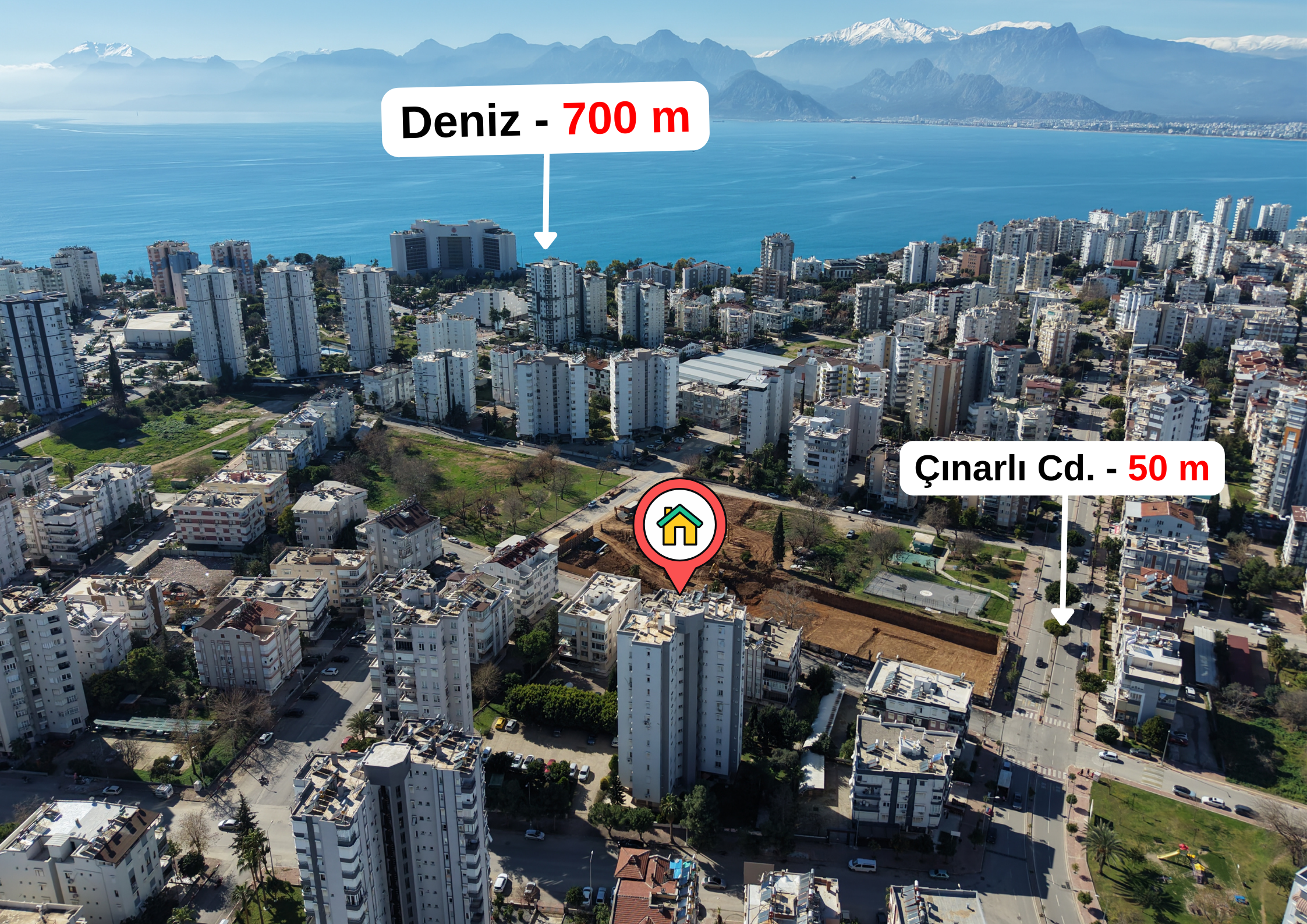 Çok merkezi lokasyon; denize, toplu ulaşıma, çarşı, pazar vb. yürüyüş mesafesinde:)